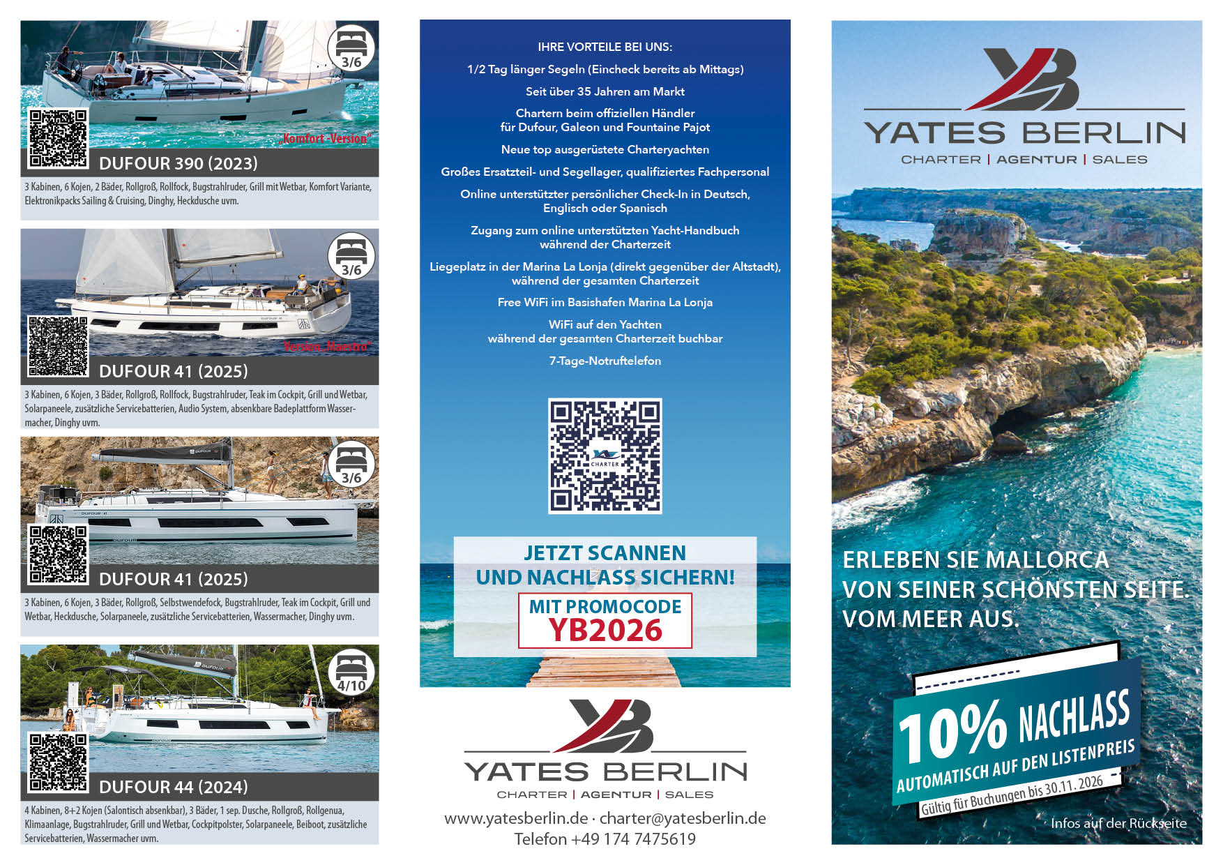 Profitieren Sie von unserer Erfahrung auf Mallorca beim Chartern von Segel- und Motoryachten, zu Sonderkonditionen mit unserem Partner,